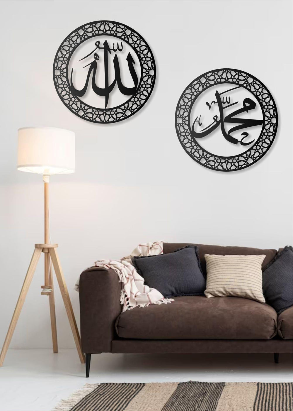 Bring timeless elegance and spiritual beauty to your home with this handcrafted 2-piece Allah & Muhammad Metal Wall Art Set, featuring exquisite Arabic calligraphy.