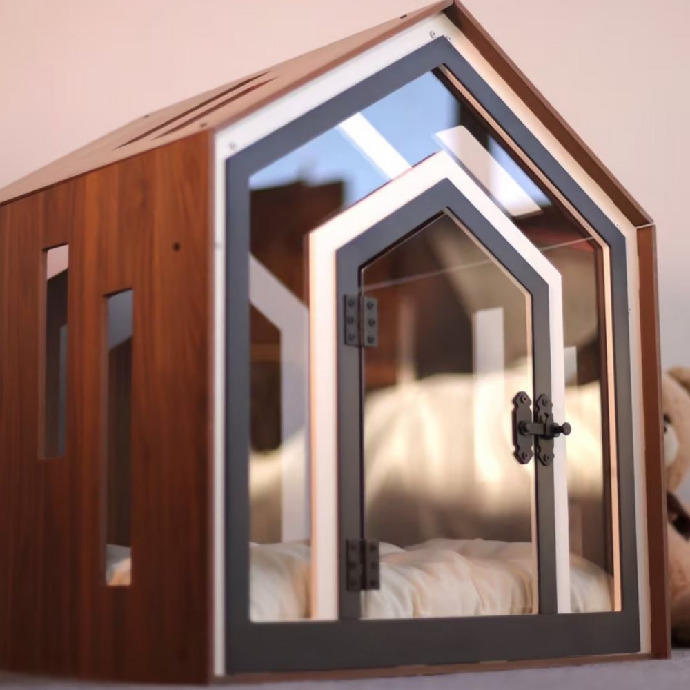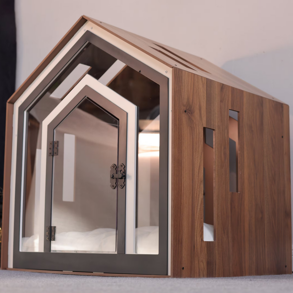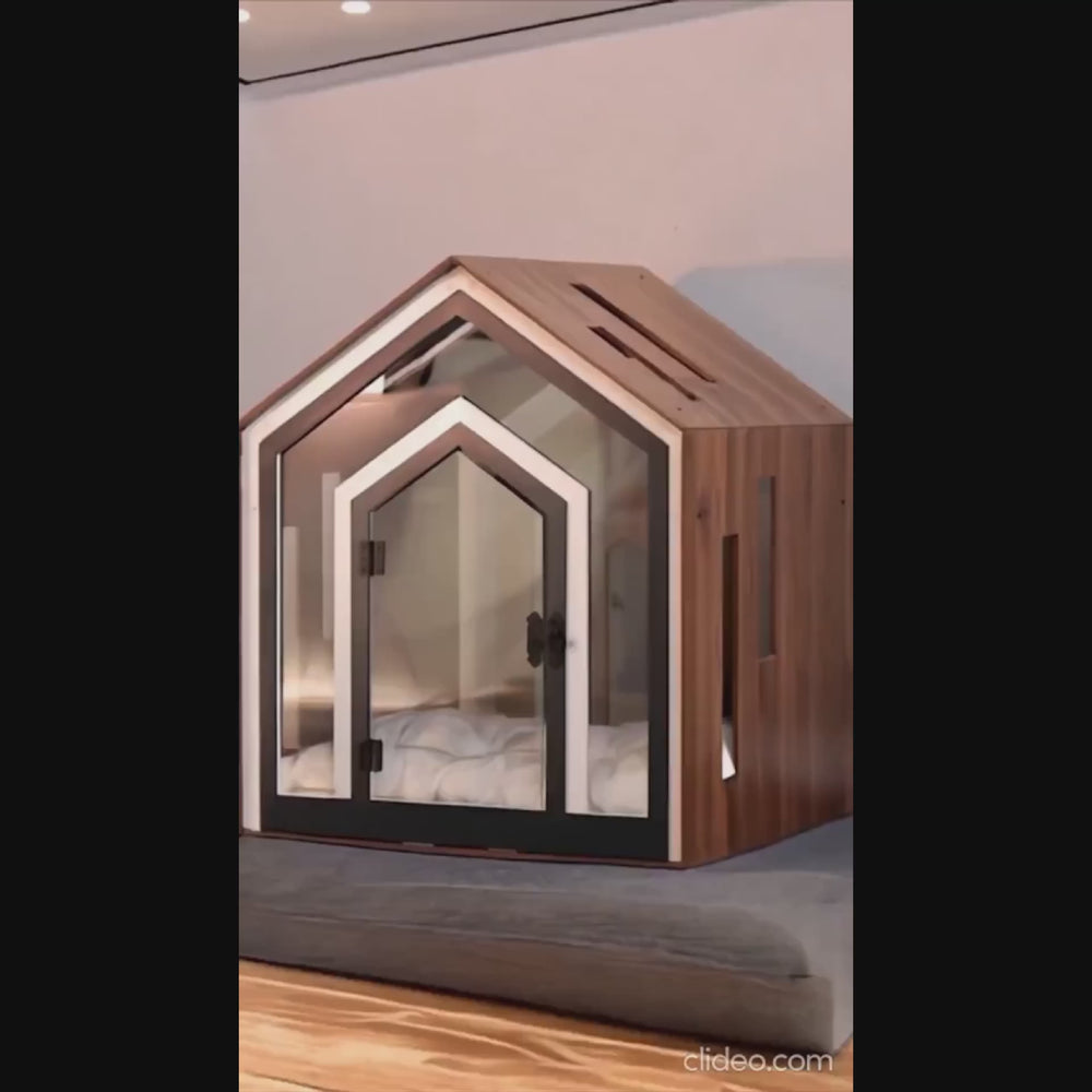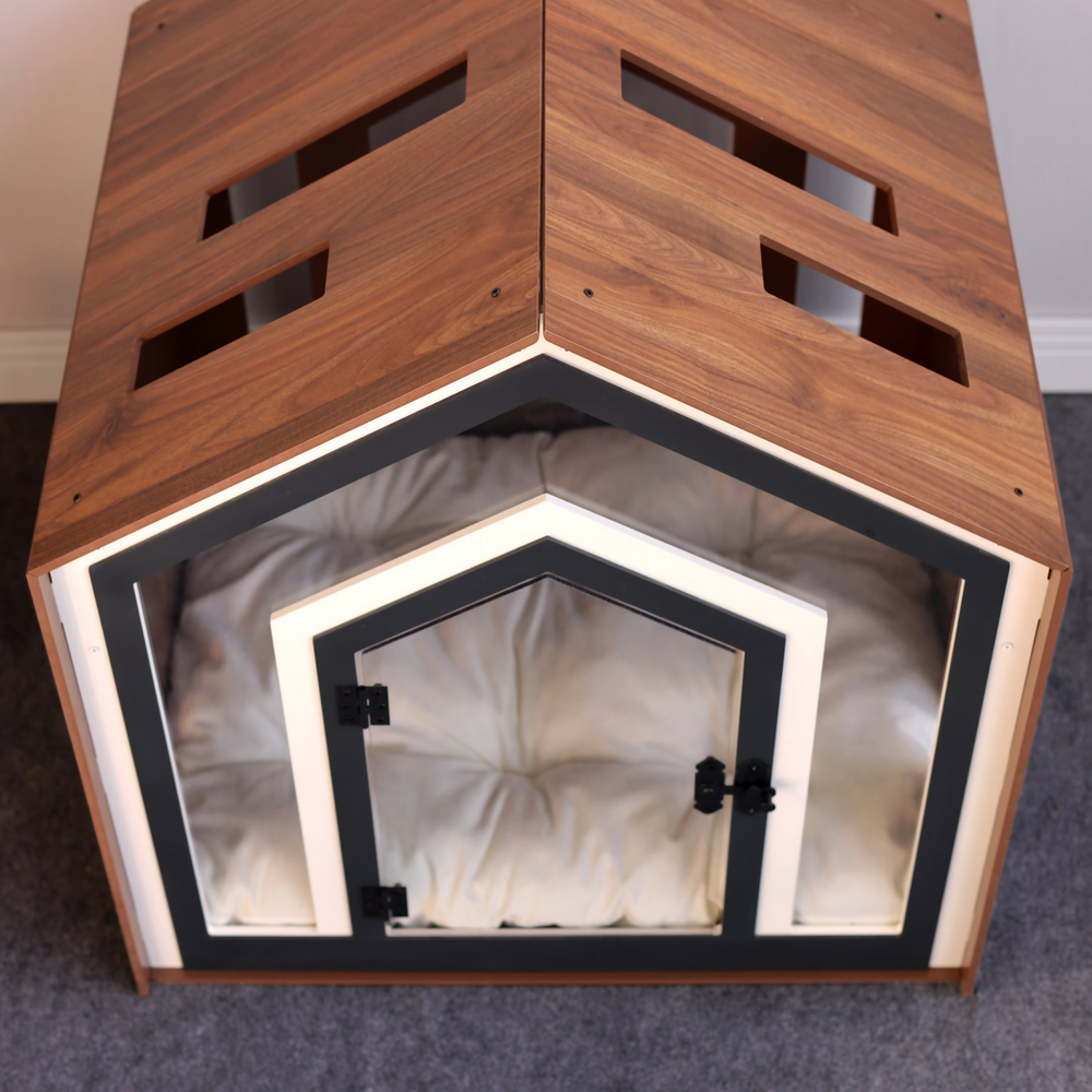 Hundehuette Calmo Walnuss aus Holz mit Kissen und wasserfestem Boden fuer kleine und grosse Hunde