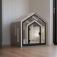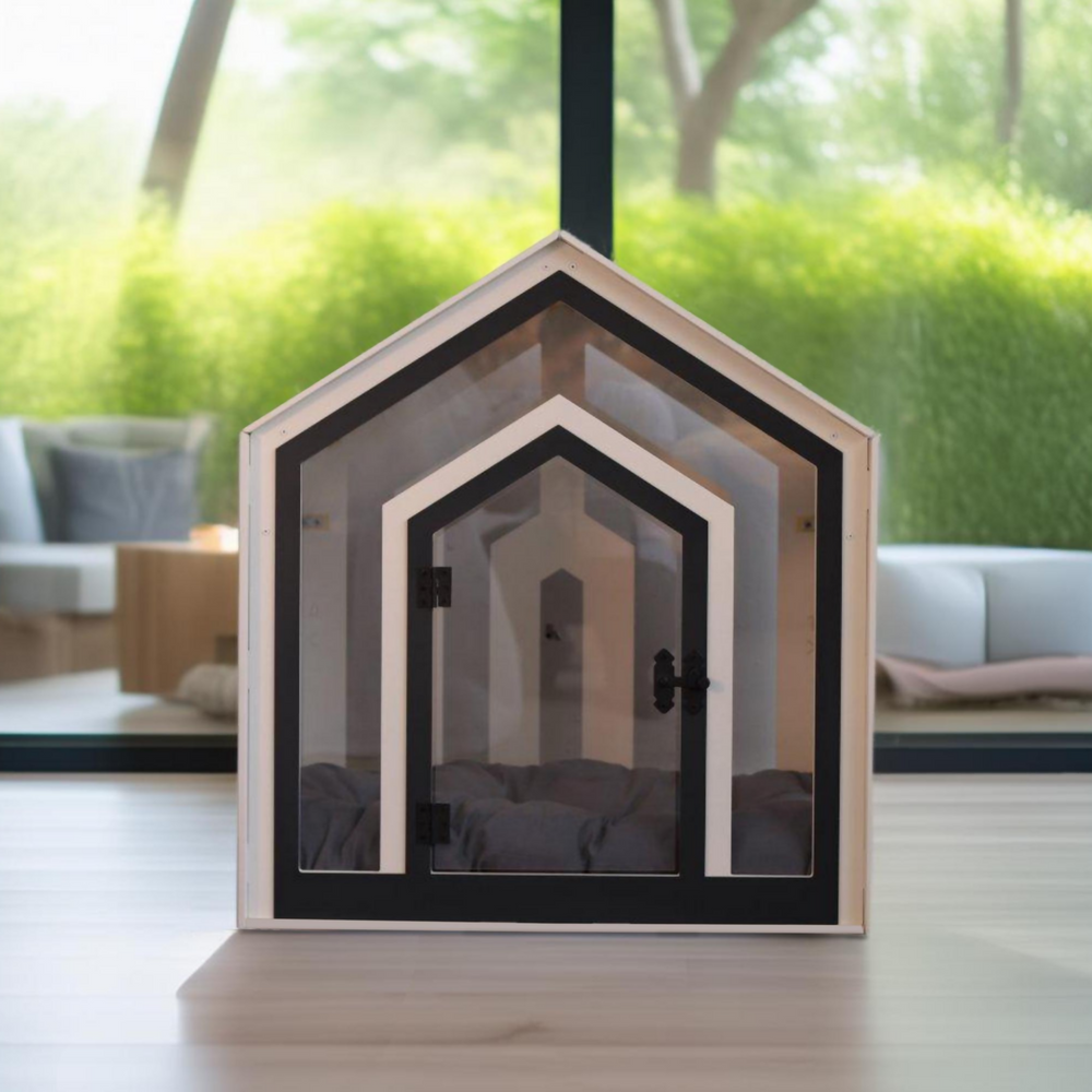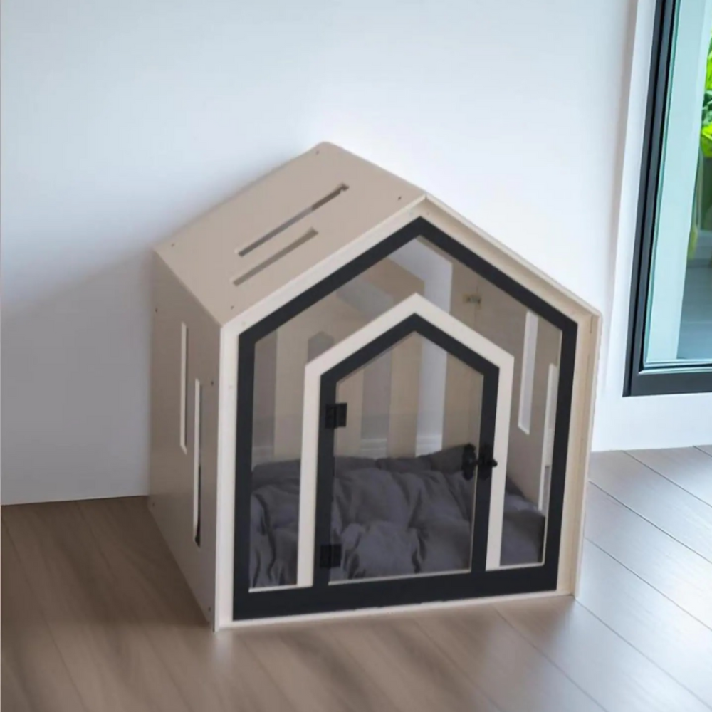 Hundehuette Calmo Weiss aus Holz mit Kissen und wasserfestem Boden fuer kleine und grosse Hunde