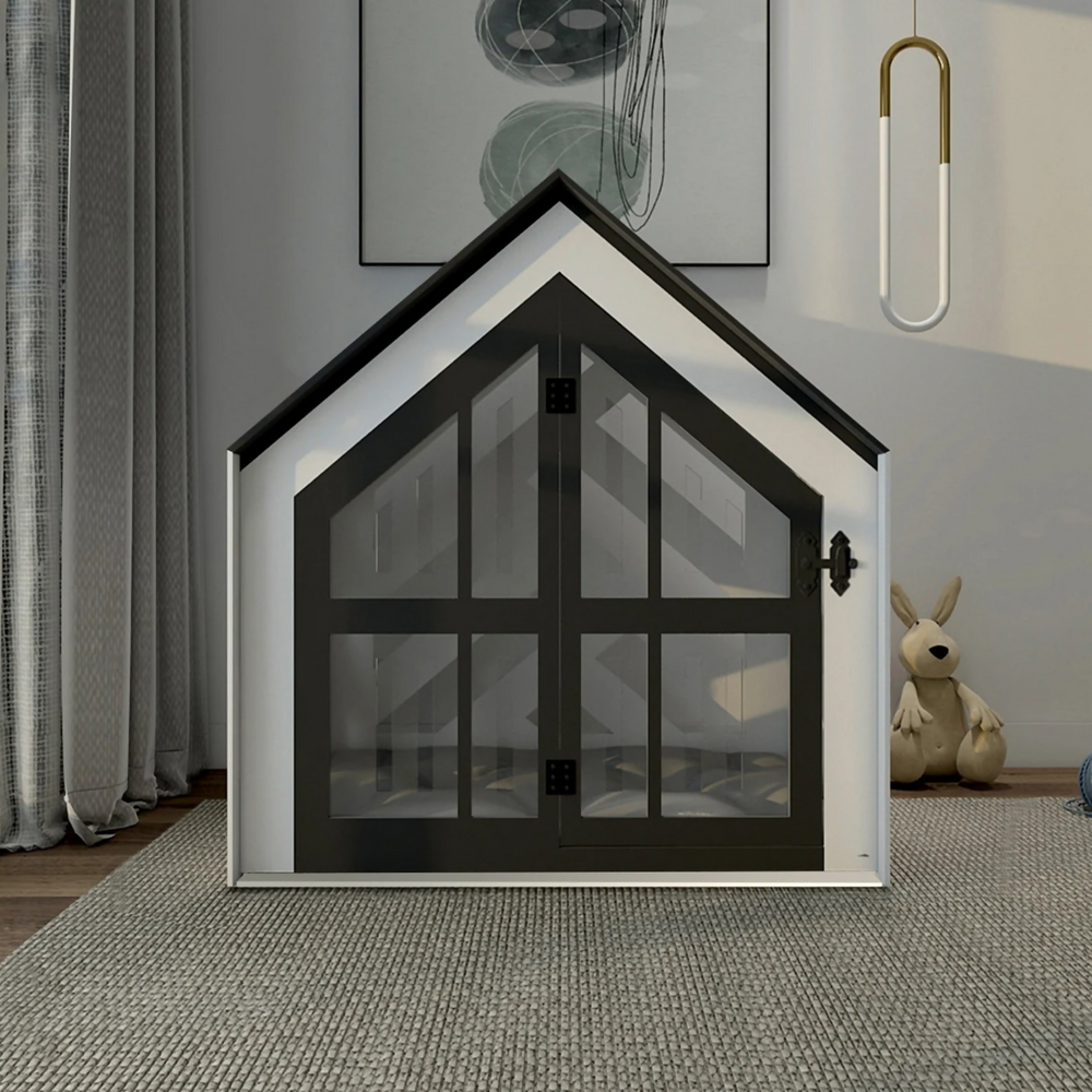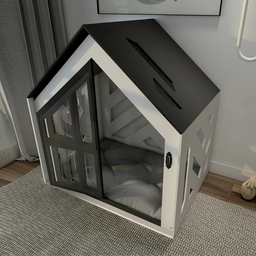 Hundehuette Canivo Designer aus Holz mit Kissen und wasserfestem Boden fuer kleine und grosse Hunde