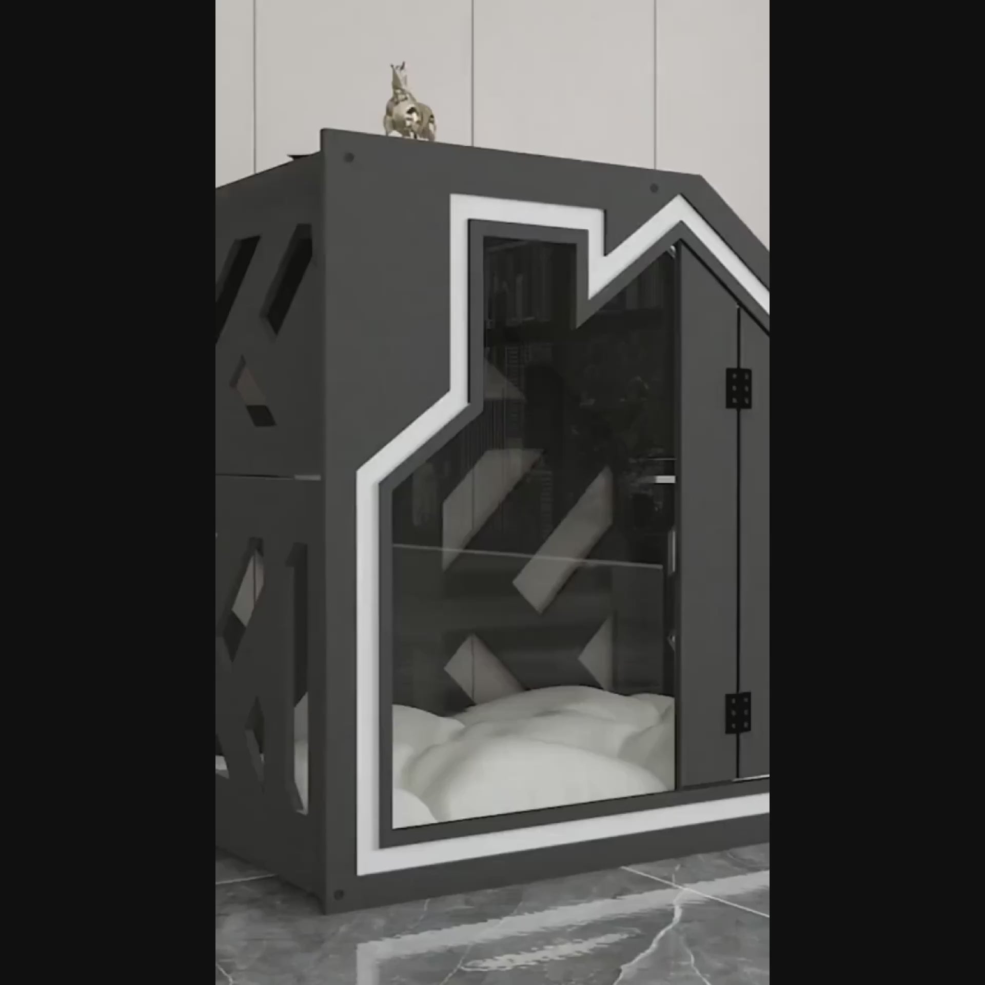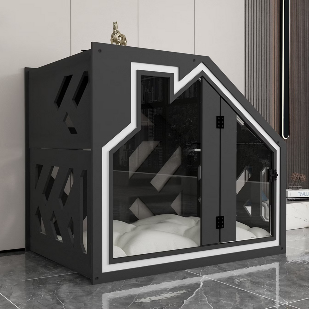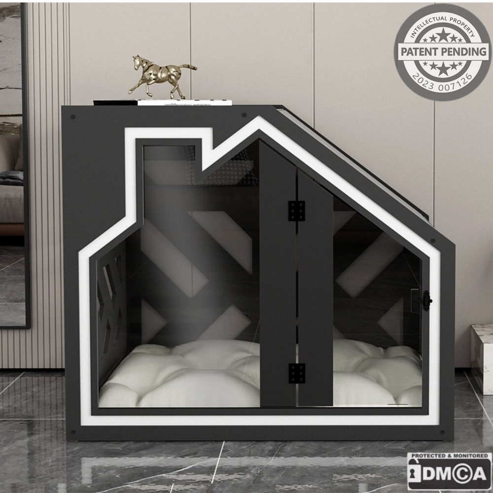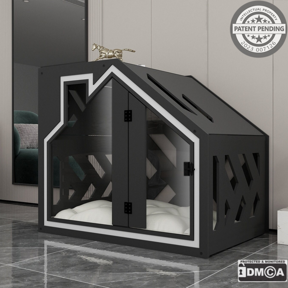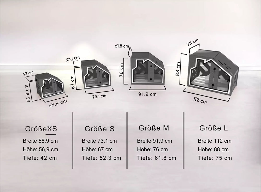 Hundehuette PawLuxe Dunklegrau Designer aus Holz mit Kissen und wasserfestem Boden fuer kleine und grosse Hunde