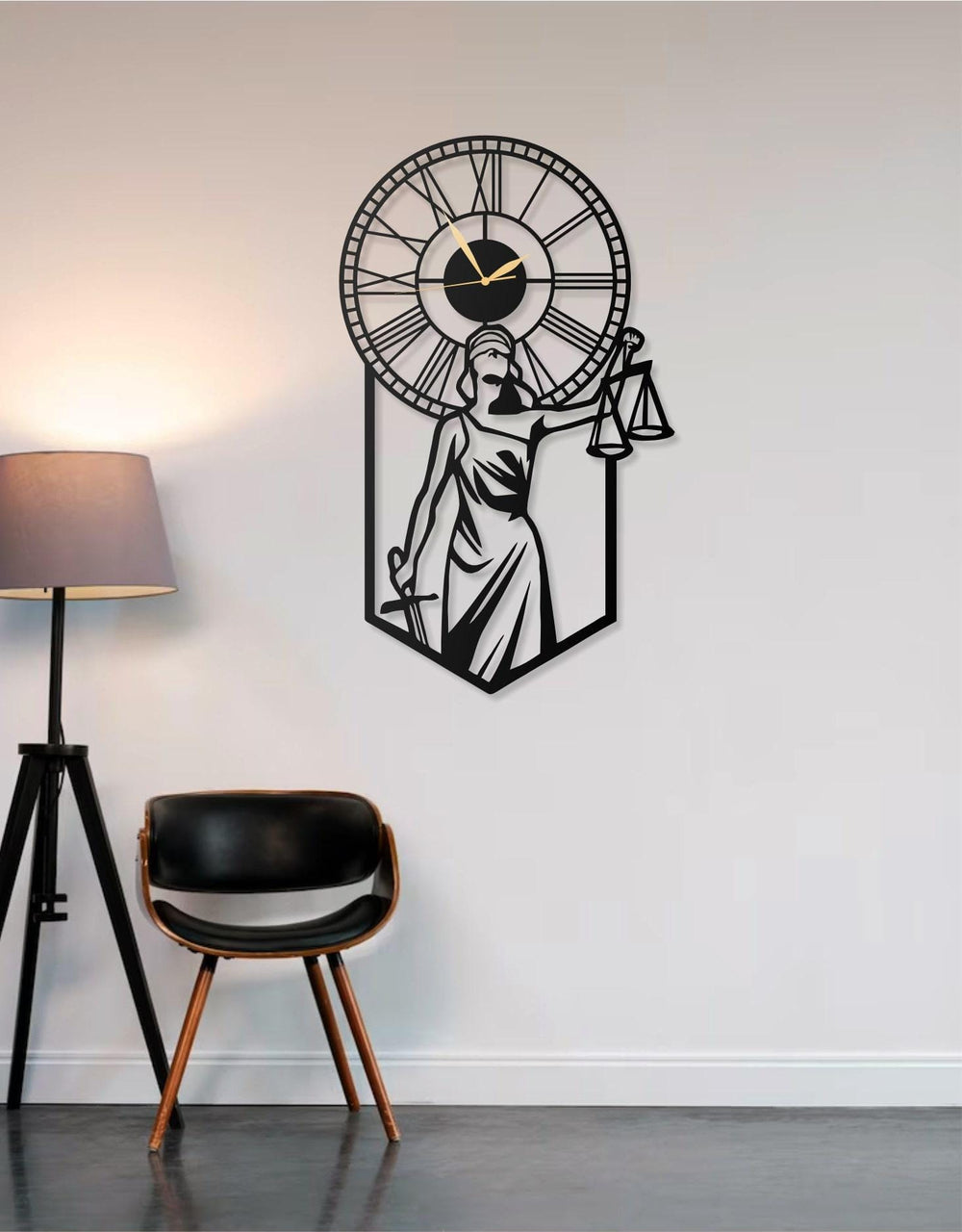 Lady Justice Metal Wall Clock - Lawyer and Justice Themed Decorative Wall Clock for Office, Law Firm, or Home Decor