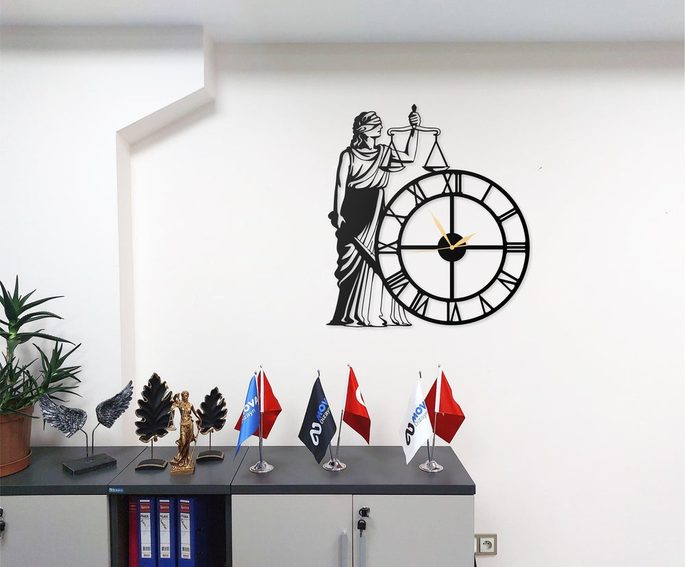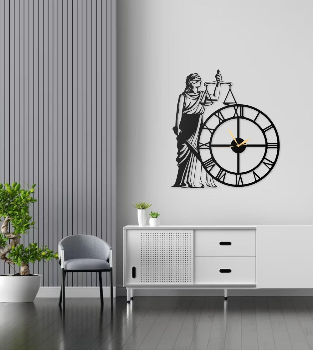 Lady Justice Metal Wall Clock Legal Themed Decorative Wall Clock with Roman Numerals for Lawyers, Law Offices&Home Decor (15.75 x 17.7 in)
