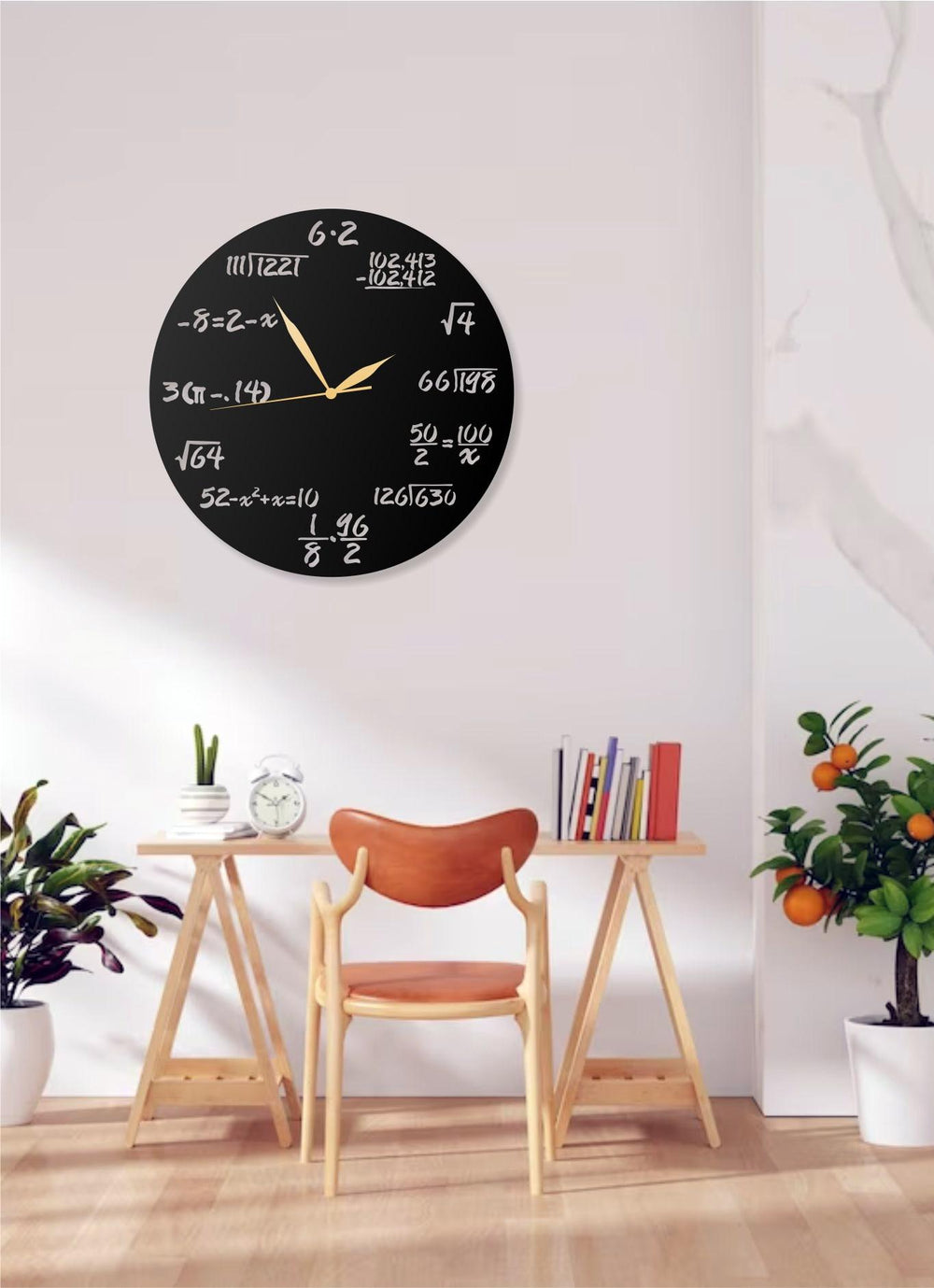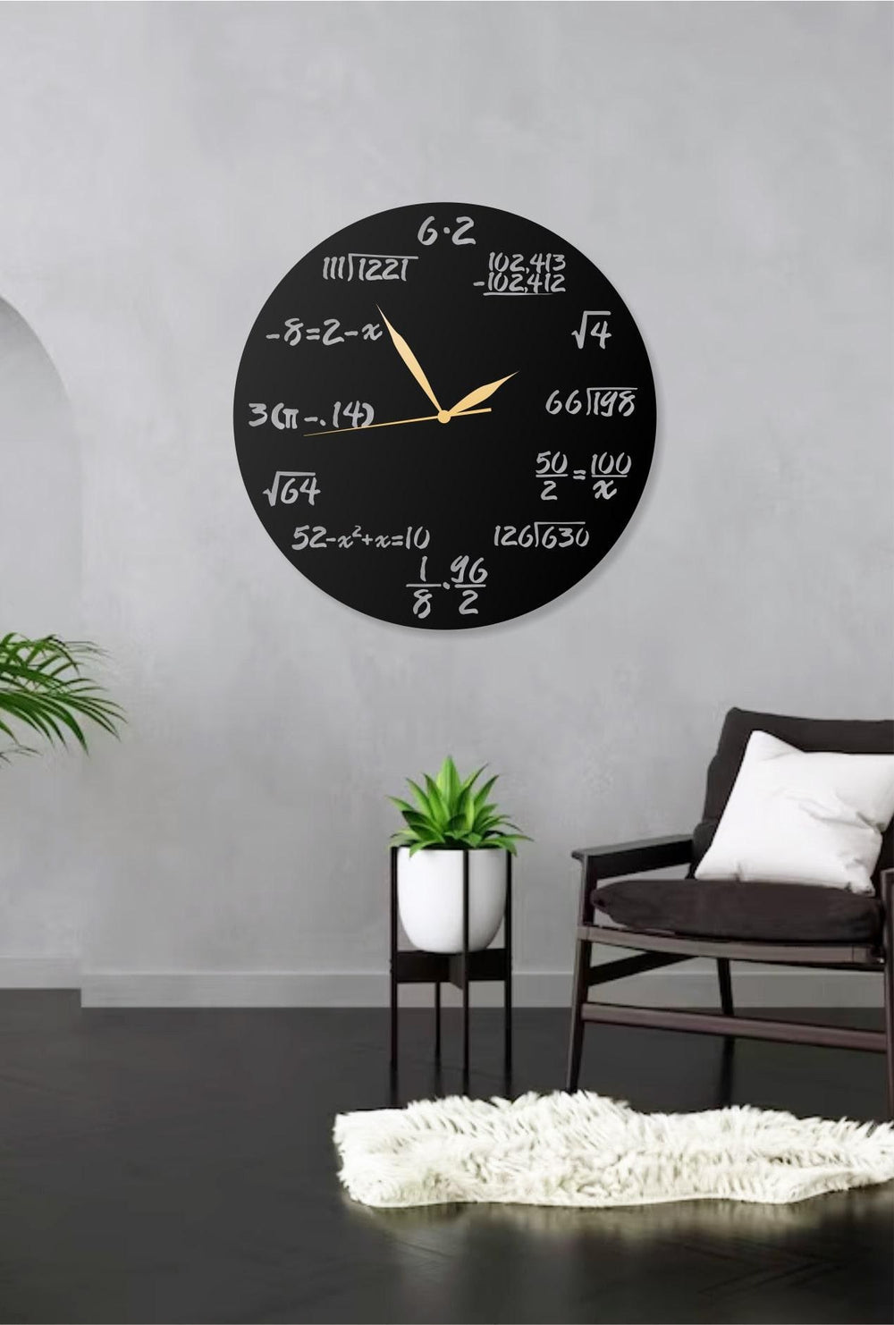 Math Formula Design Metal Wall Clock - Unique Black Decorative Clock for Teachers, Students, Classroom, Home or Office Decor