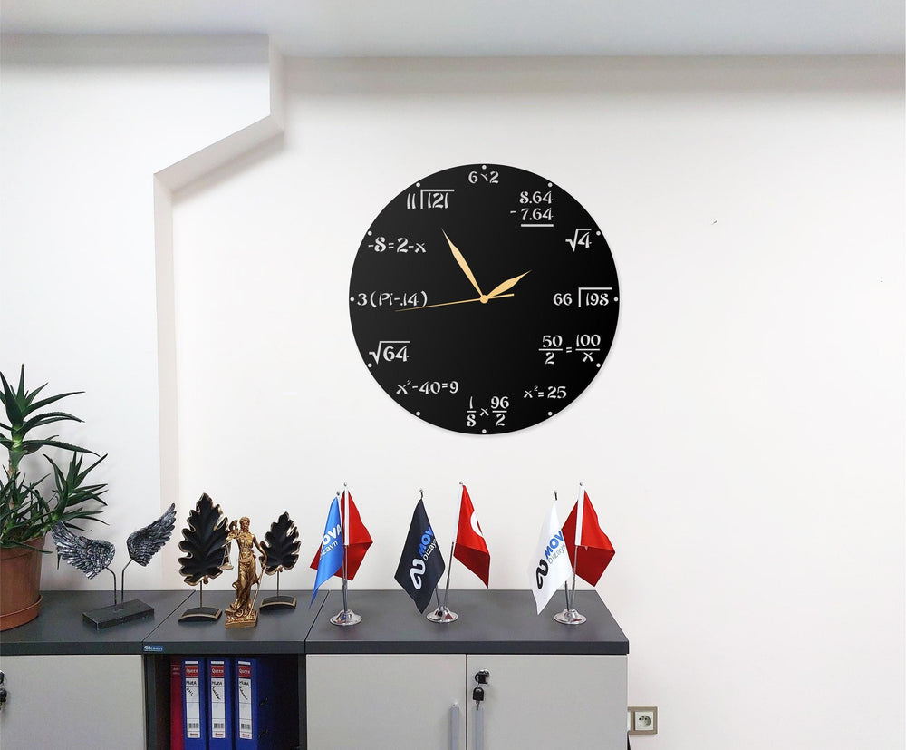 Math Formula Design Metal Wall Clock - Unique Black Decorative Clock for Teachers, Students, Classroom, Home or Office Decor