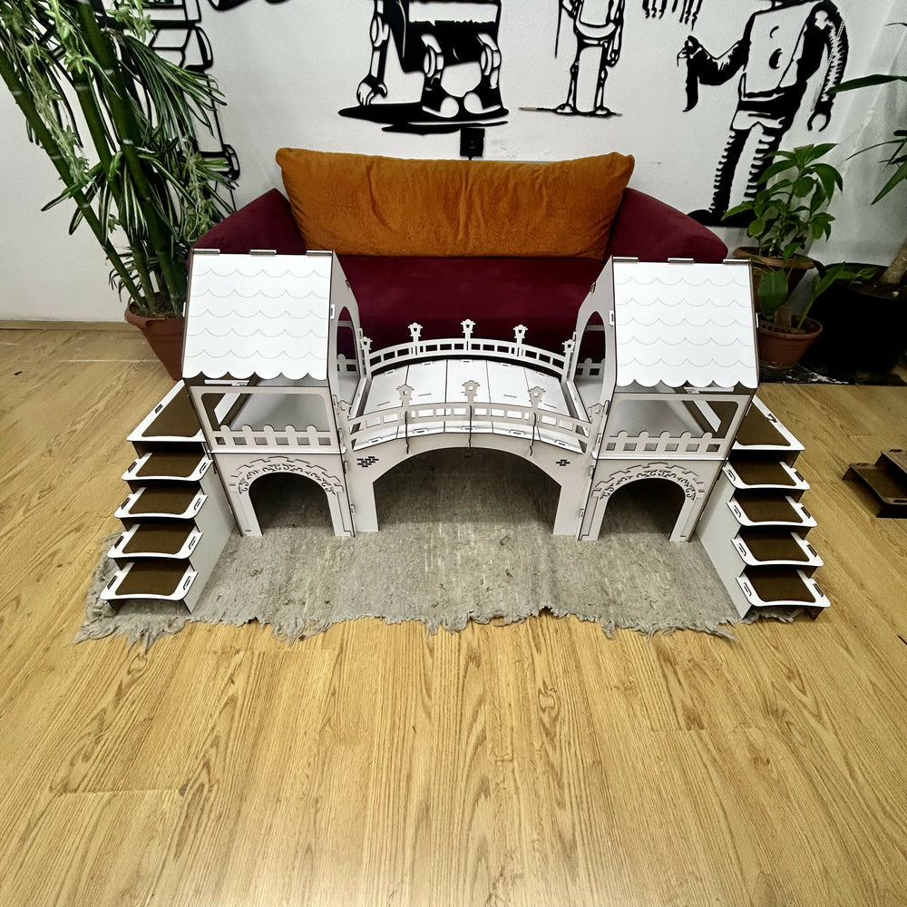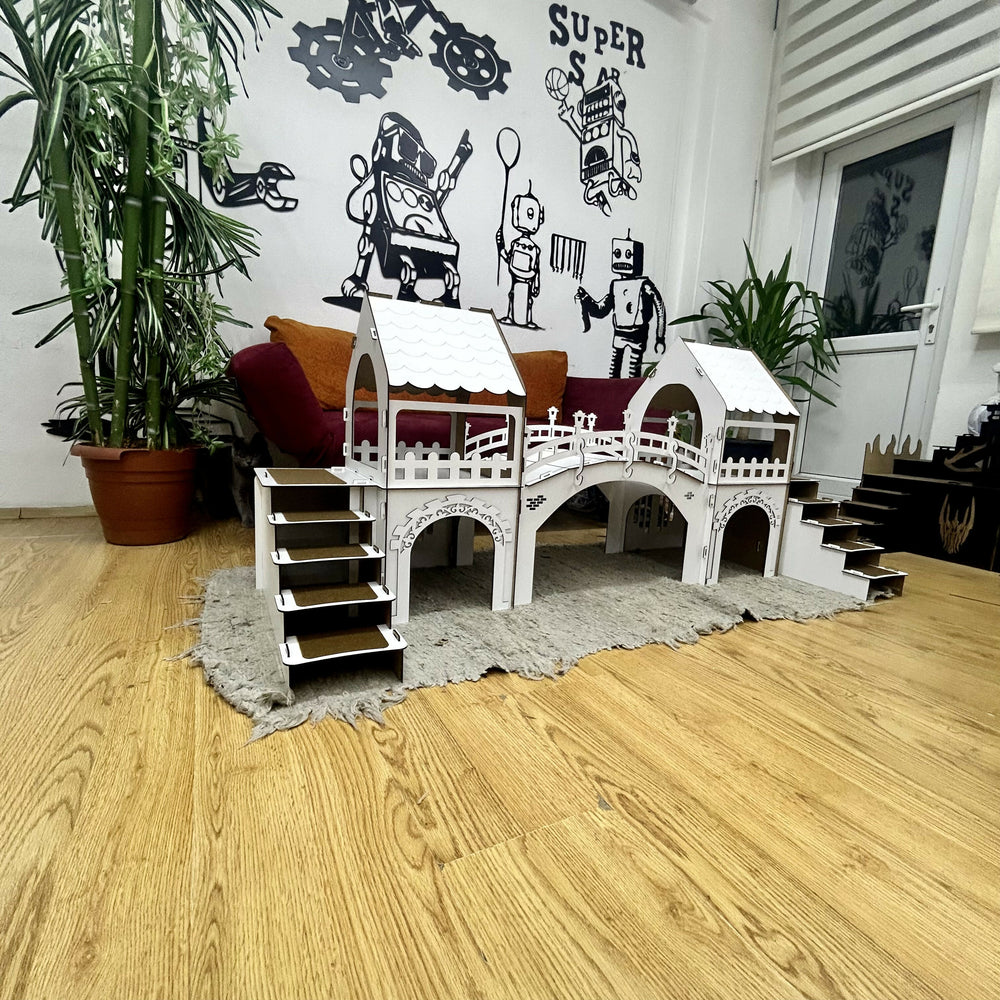 Dieser wunderschön gestaltete zweistöckige Meerschweinchenstall aus Holz ist aus 3 mm Sperrholzplatten gefertigt.