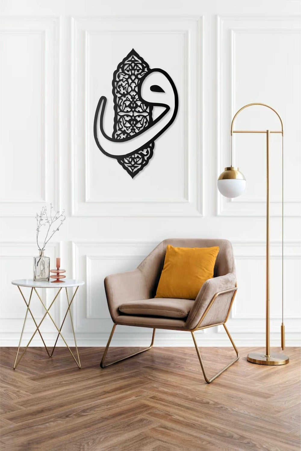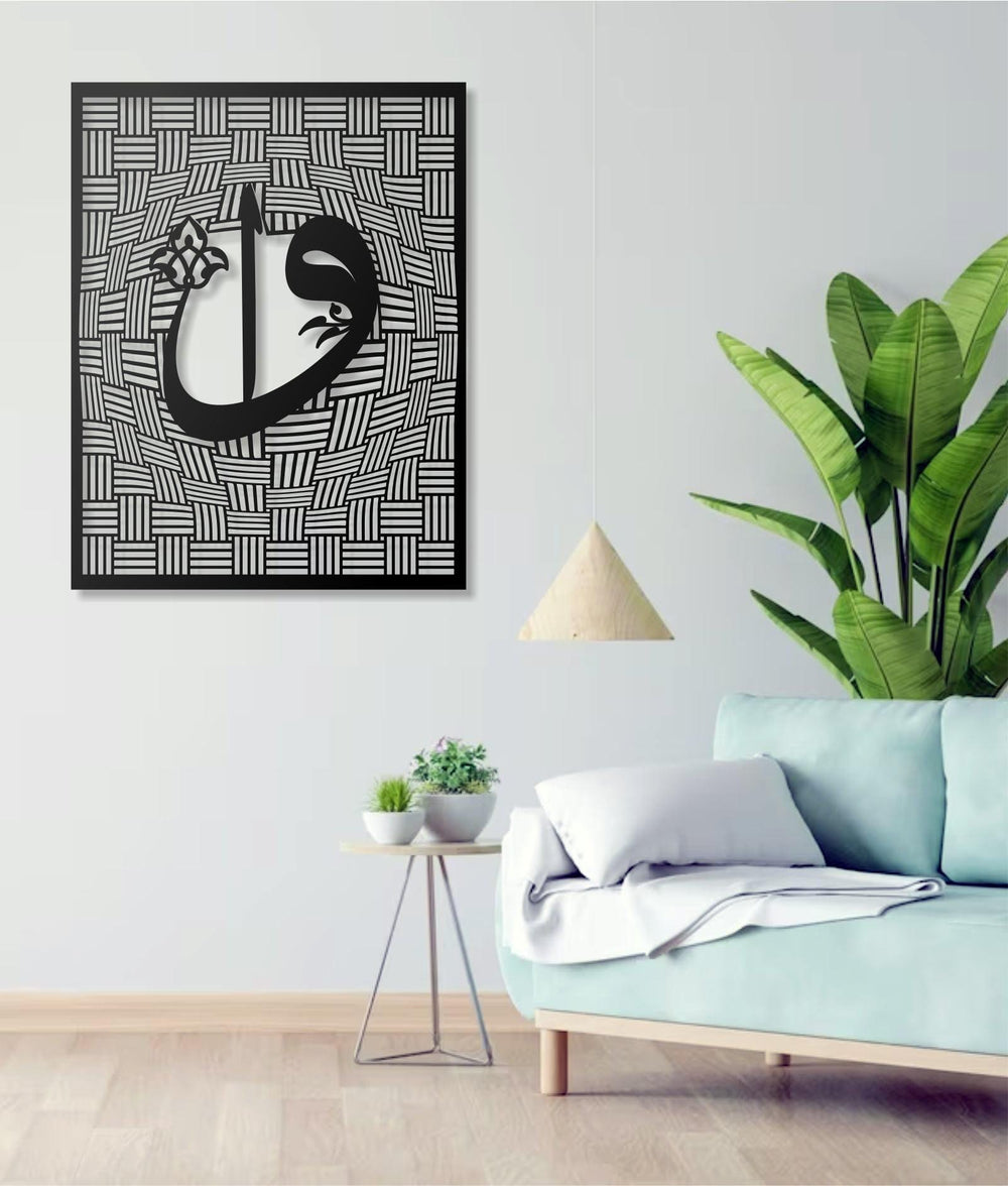 Metal Islamic Wall Art Arabic Letter Vav Calligraphy, Geometric Motif Design, Modern Muslim Wall Hanging, Religious Islamic Home Decor