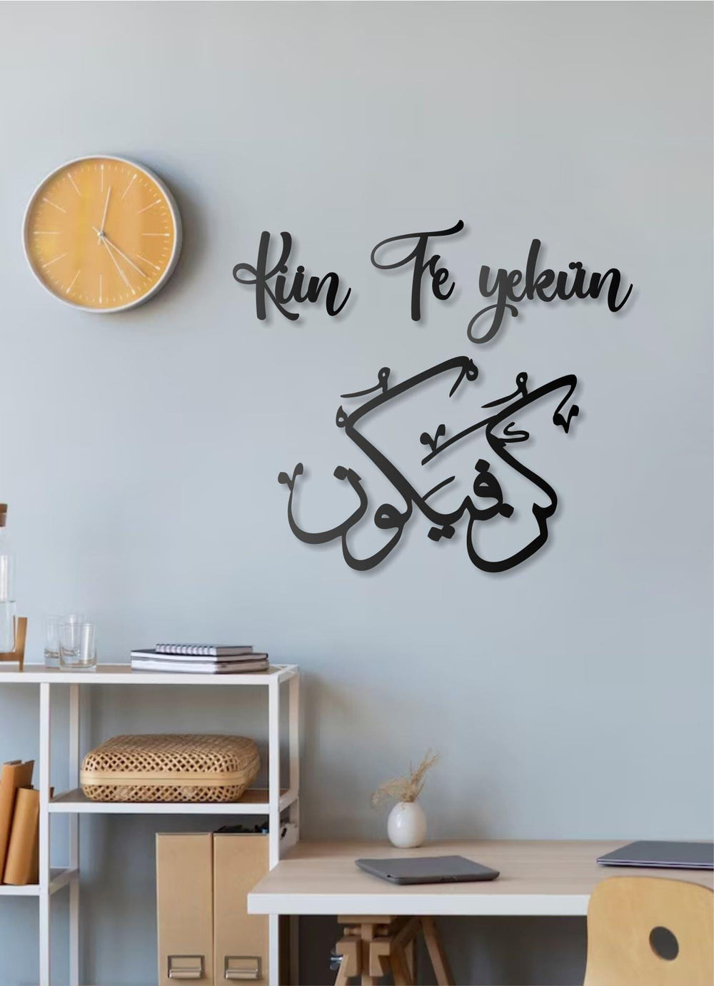 Bring timeless spirituality and elegance into your home with this beautifully crafted “Kun Fayakun” (كُنْ فَيَكُونُ) metal wall art, featuring the powerful Quranic phrase: