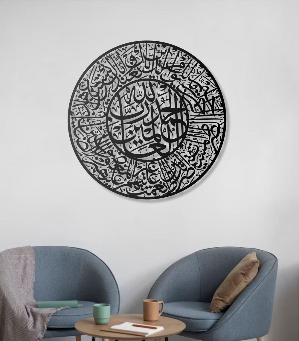 Metal Islamic Wall Art Surah Al-Fatiha Arabic Calligraphy, Modern Muslim Wall Hanging, Religious Home Decor