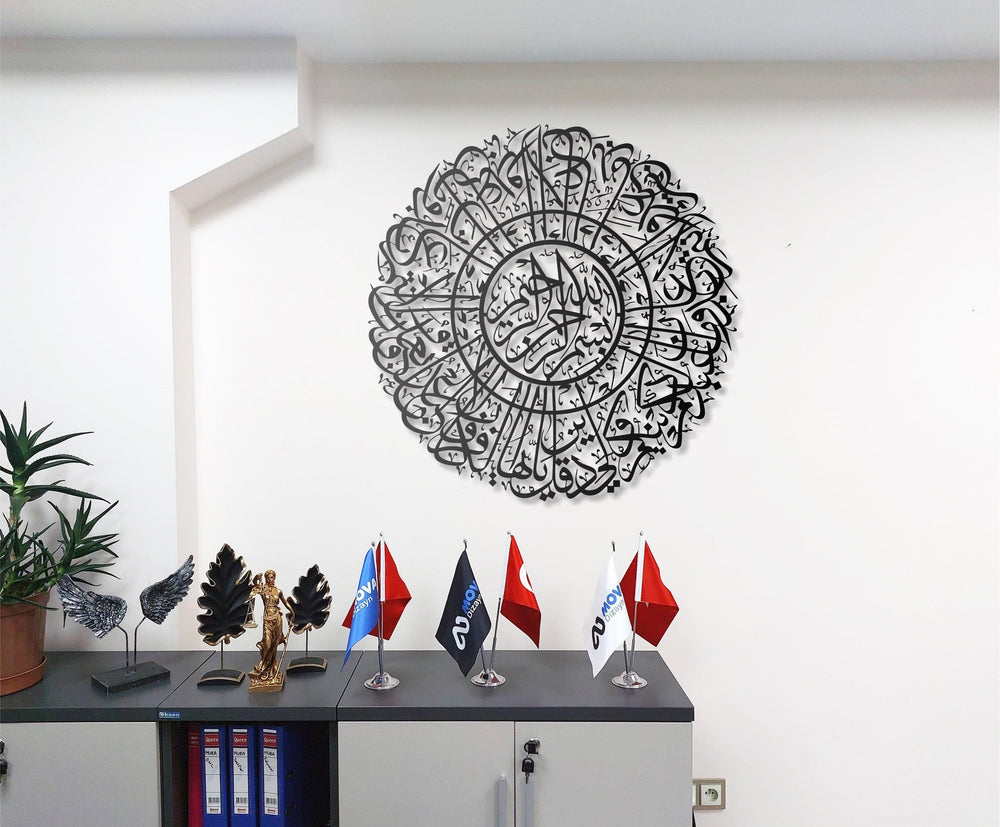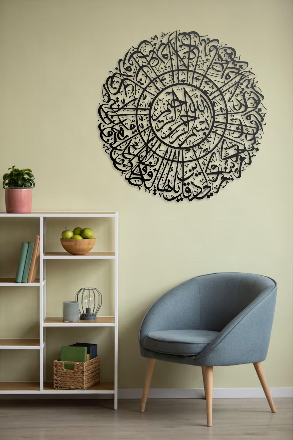 Bring timeless spirituality and elegance into your home with this beautifully crafted Surah Al-Kafirun metal wall art, featuring the sacred Arabic calligraphy of the chapter Surah Al-Kafirun (109).