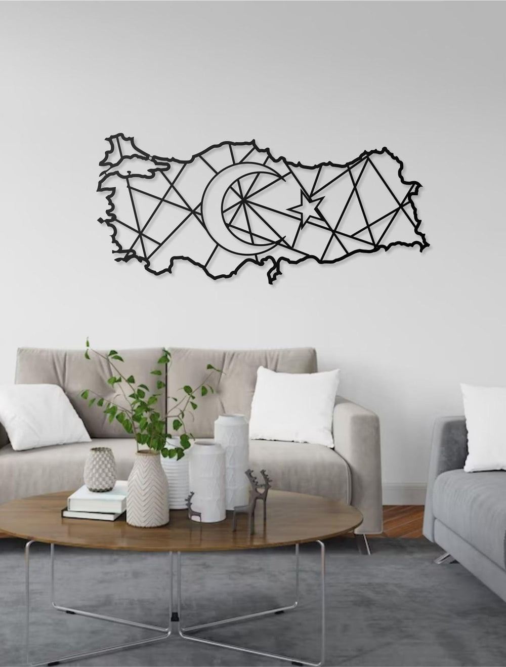 Metal Turkey Map Wall Art with Crescent & Star Design Modern Metal Wall Decor, Turkish Map Wall Hanging, Unique Gift for Home, Office