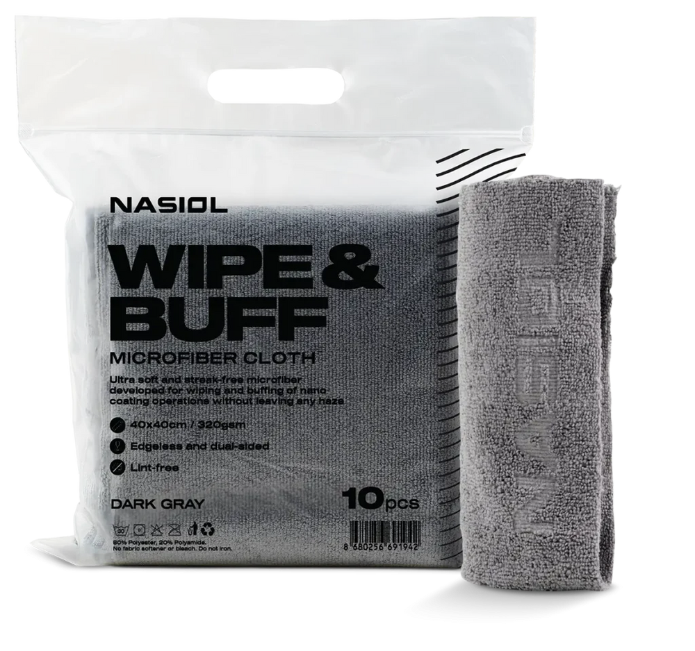 Nasiol Wipe and Buff Microfiber Cloth Dark Gray 10pc