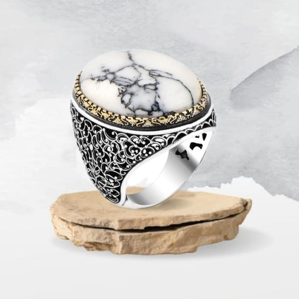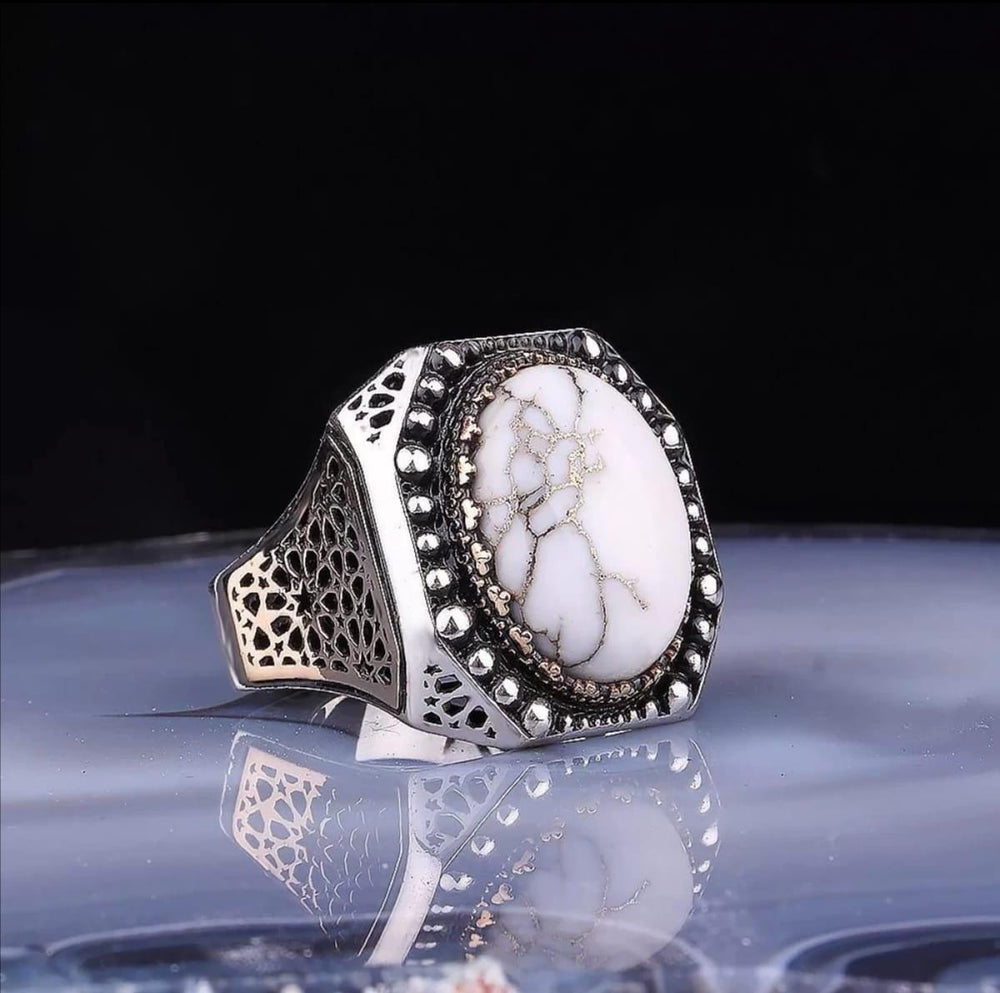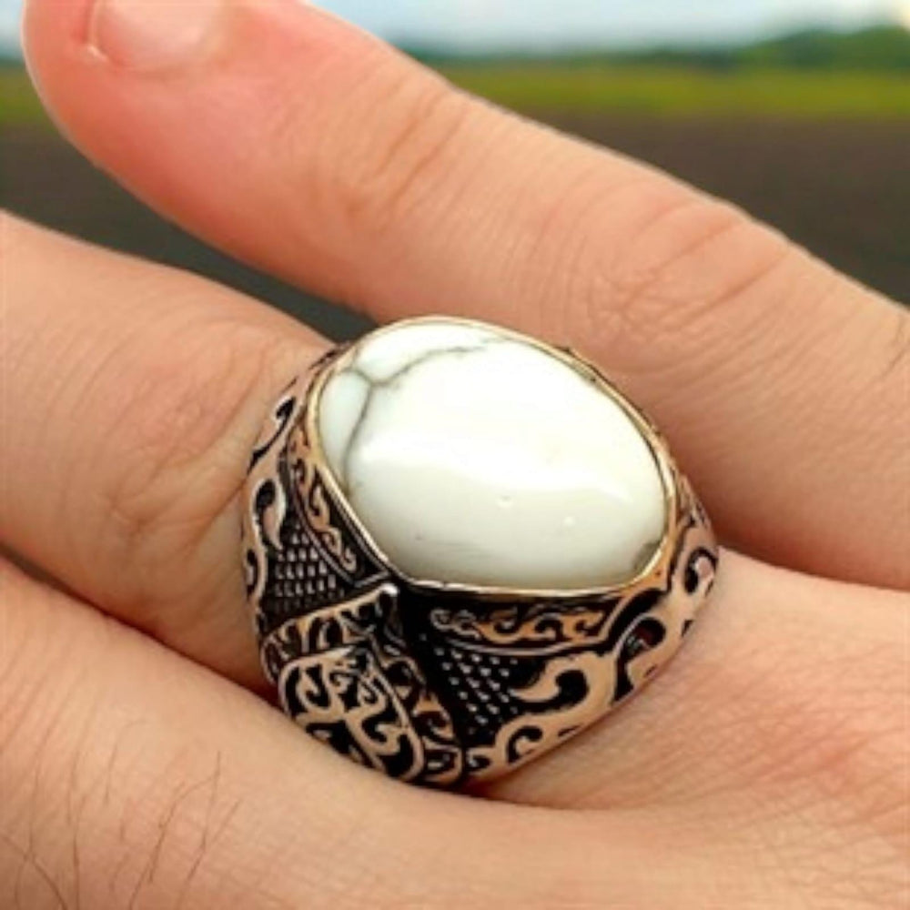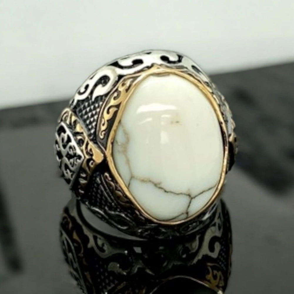 Sterling Silver Howlite & Ruby Ring: Handmade Turkish Ottoman Style