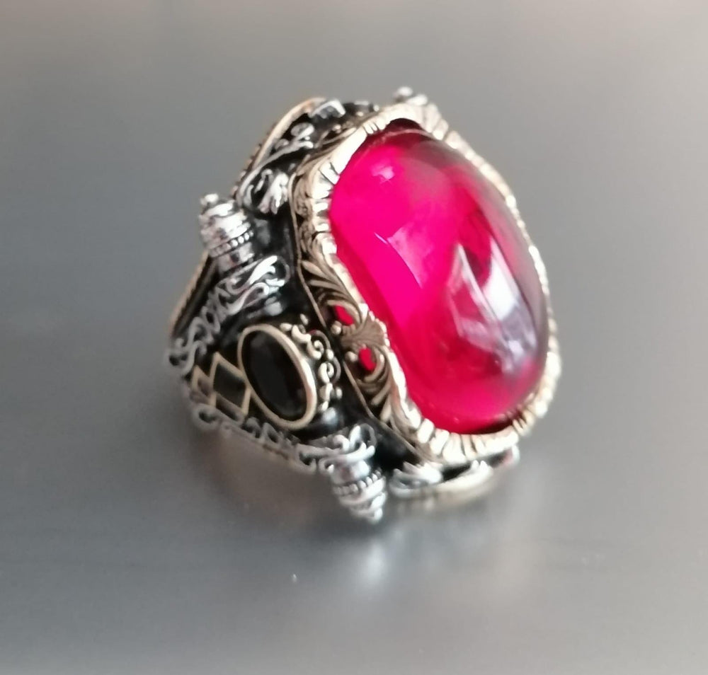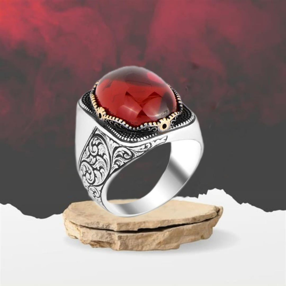 Sterling Silver Ruby Ring: Handmade Turkish Ottoman Style
