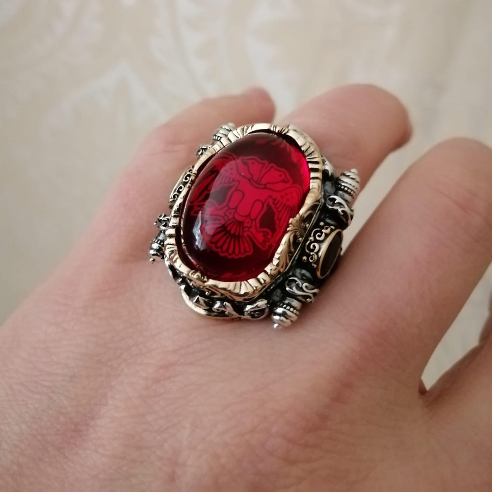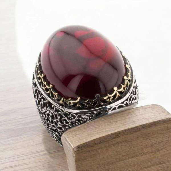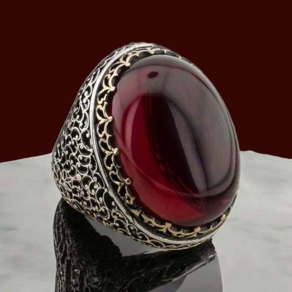 Genuine red agate stone: The ring is adorned with natural red agate, known for its powerful effect against negative energies and for promoting inner strength.