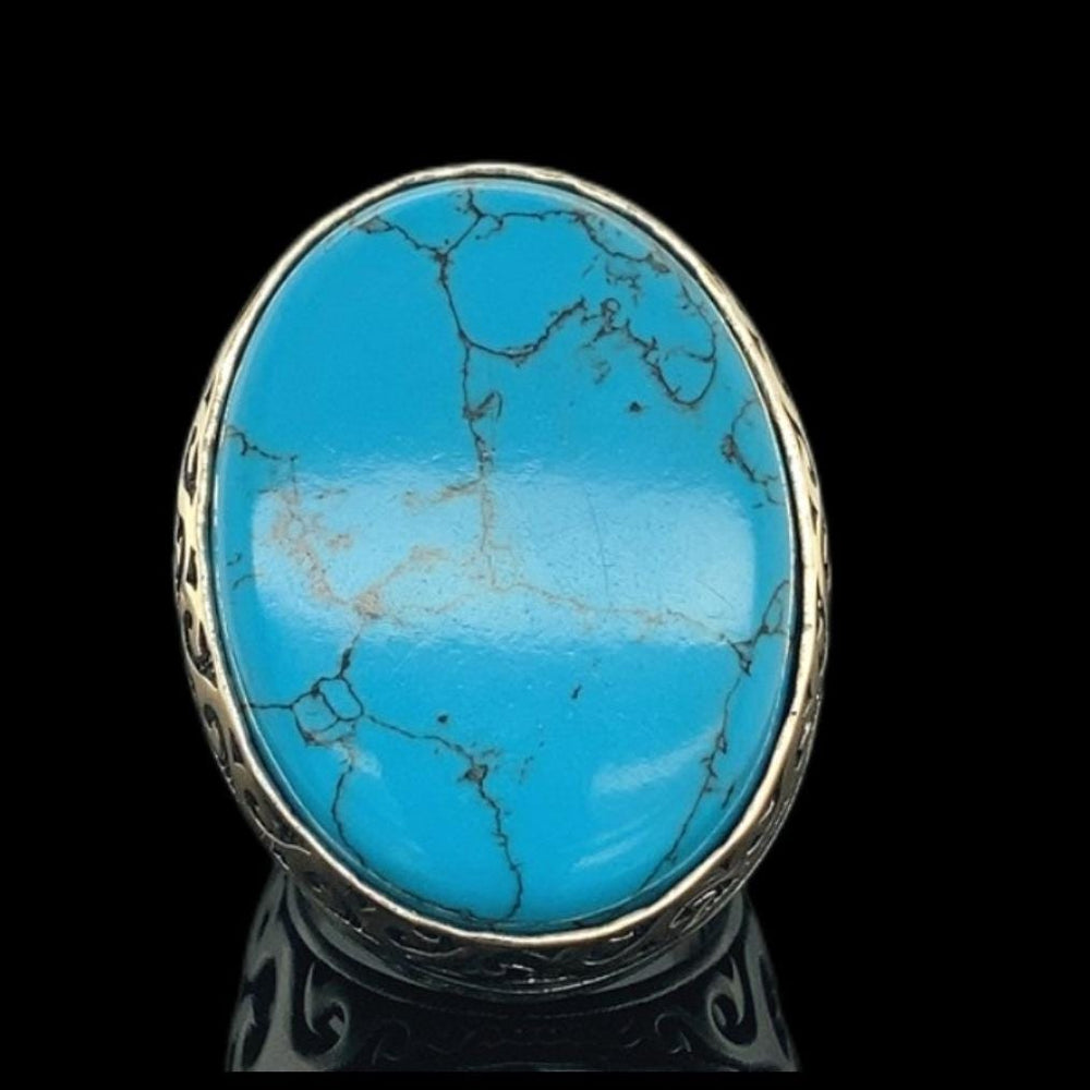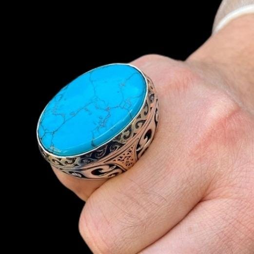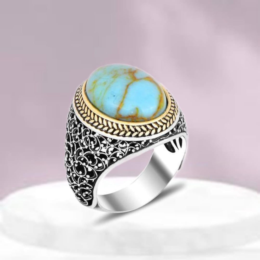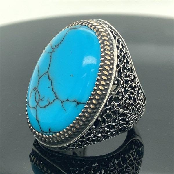 Sterling Silver Turquoise Men's Ring: Handmade Ottoman Style