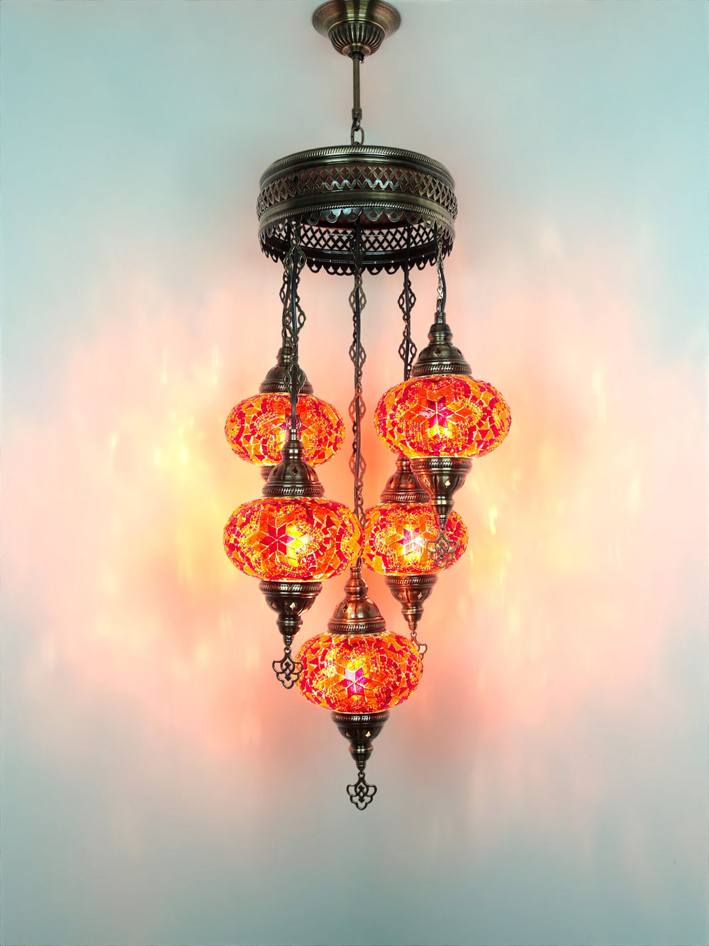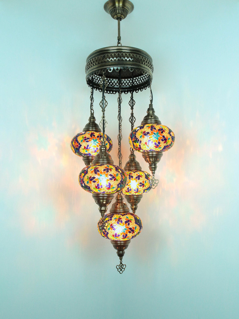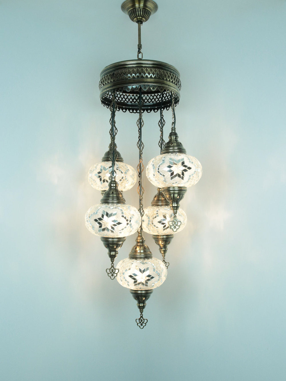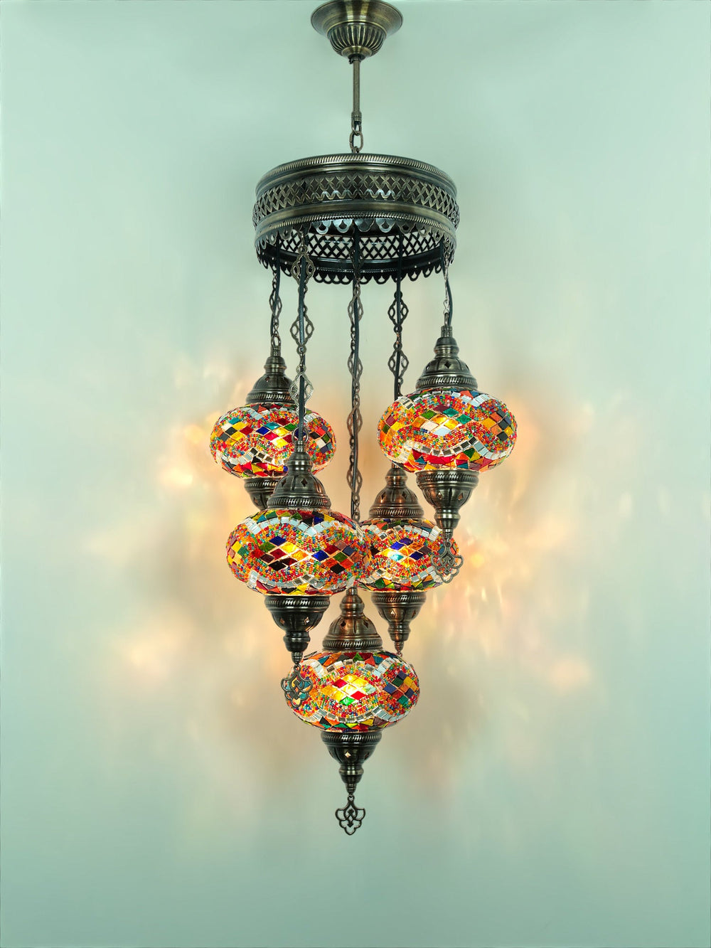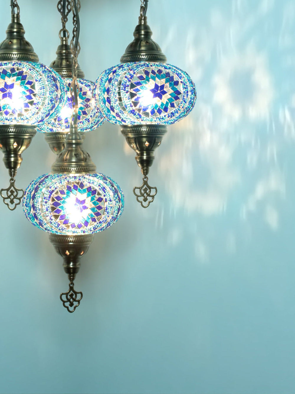 Wenn Sie Ihrem Zuhause Eleganz und einen Hauch von kulturellem Erbe verleihen möchten, sind türkische Mosaik-Kronleuchter die perfekte Wahl. Außerdem erhellen diese atemberaubenden Kronleuchter nicht nur den Raum, sondern werden auch zu einem Blickfang. Probieren Sie den türkischen Mosaik-Kronleuchter mit 5 Kugeln aus, eine vielseitige Pendelleuchte, die jeden Raum in einen charmanten Ort verwandeln kann.