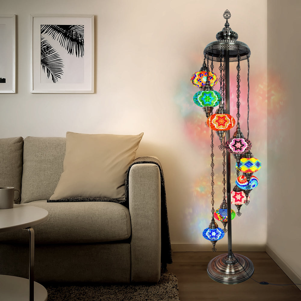 Türkische Mosaik Stehlampe 9 Kugeln - Orientalische Bodenlampe Boho Stil