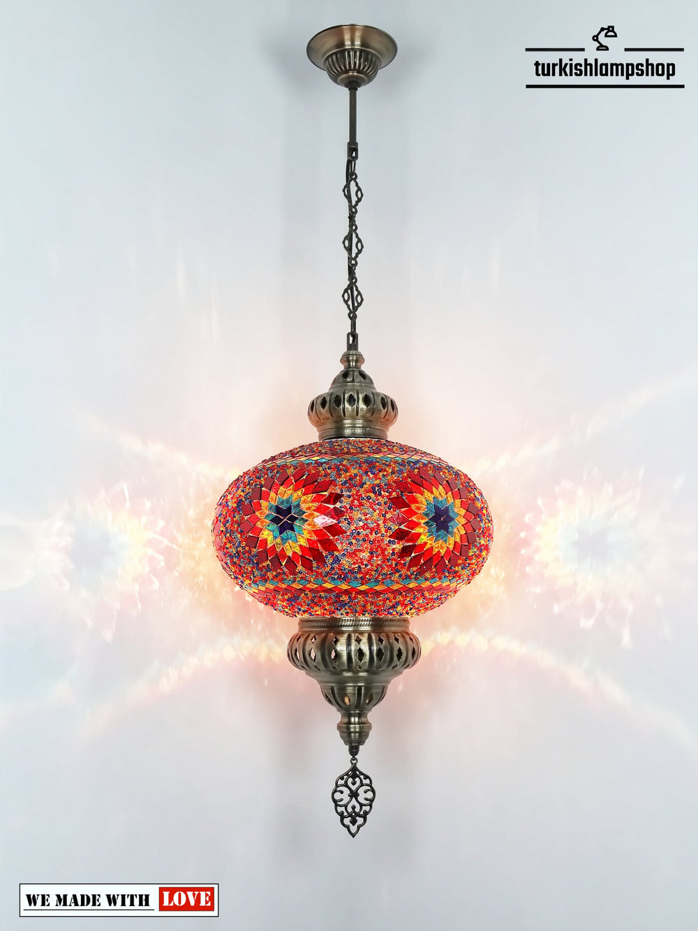 However the Turkish mosaic glass Hanging lamp are available in a wide range of designs, patterns, and colors. Especially, you can find a lamp that fits and complements your decor, from geometric shapes to vibrant floral motifs. Moreover these mosaic glass lamps are crafted using quality materials and traditional techniques, ensuring longevity.