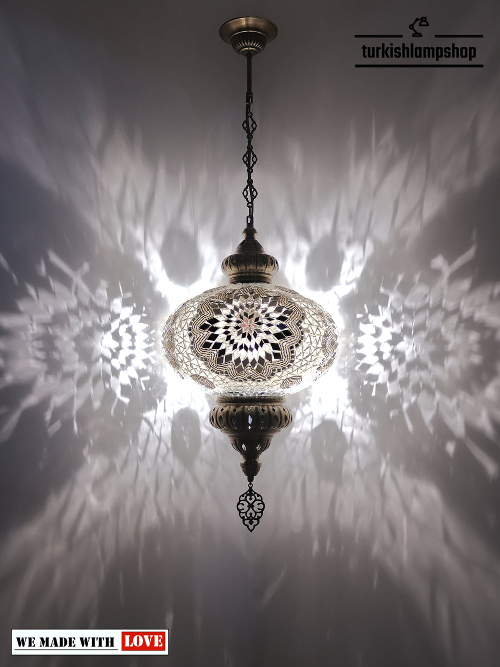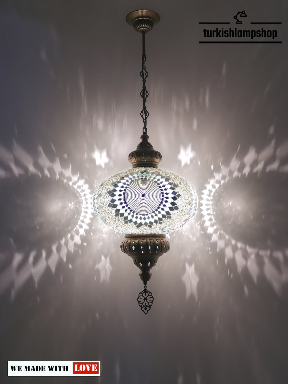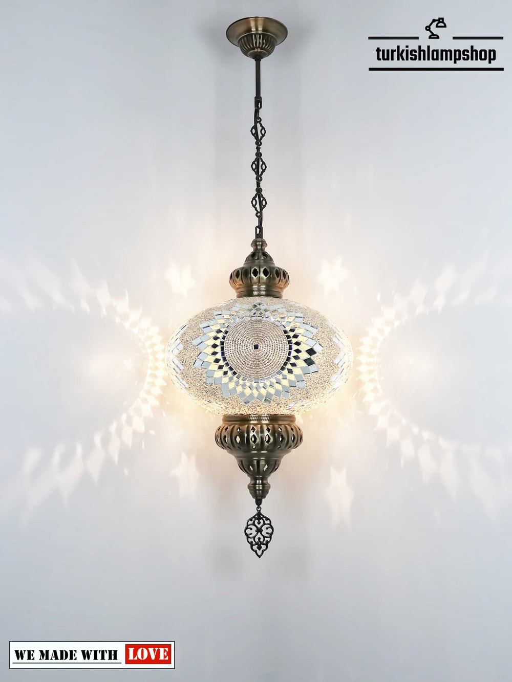 Shortly the mosaic glass used in these lamps creates a warm and inviting glow, perfect for setting the desired ambiance. Especially the mosaic pieces allow the light to scatter beautifully, casting fascinating shadows and patterns on the surrounding walls. Finally embrace the enchanting world of Turkish hand made mosaic glass pendant lamps and welcome your guests to a fascinating experience.