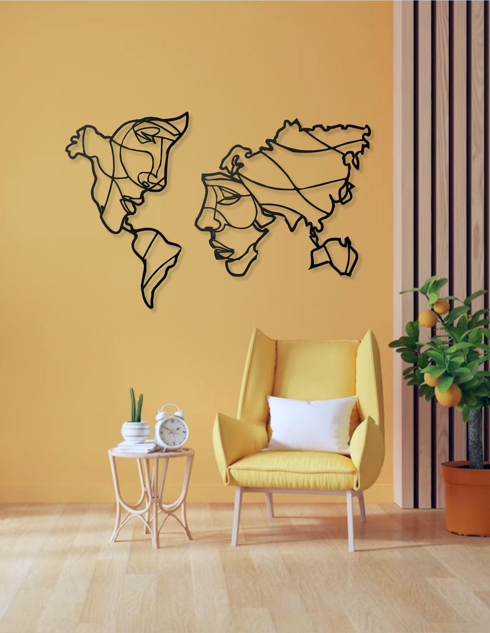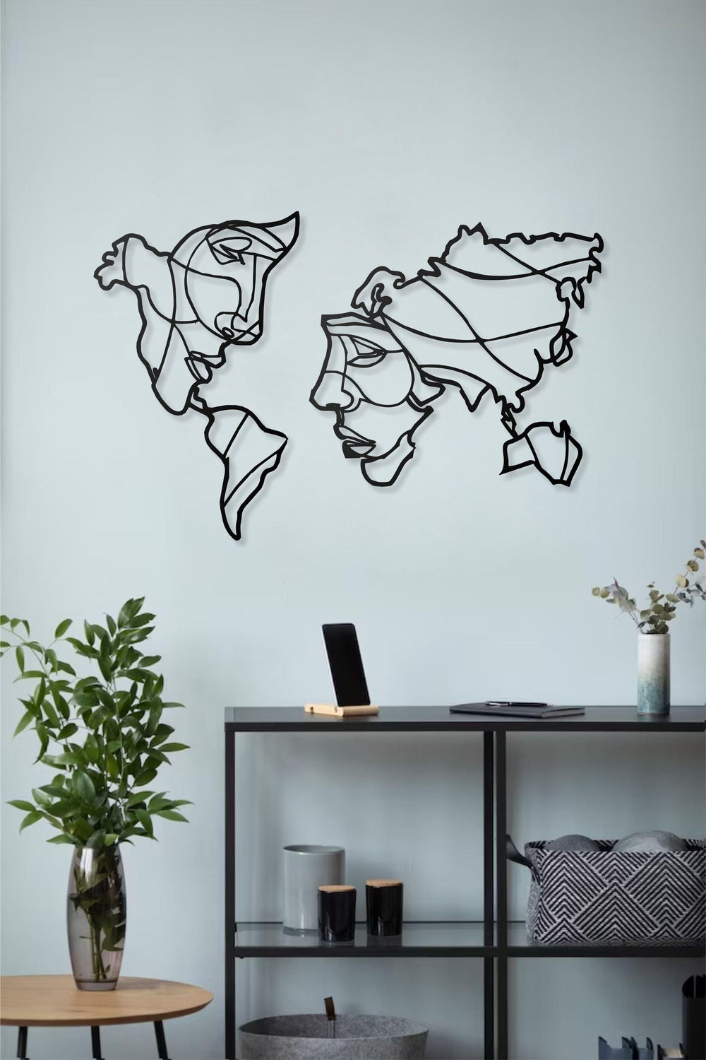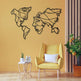 World Map Metal Wall Art with Human Silhouette Design - Modern One Piece Map Wall Decor for Living Room, Office, Bedroom